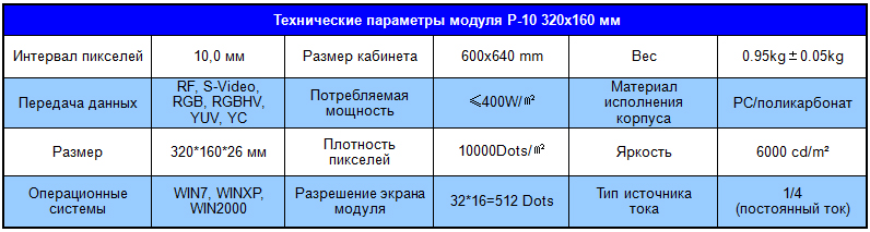 Существуют монохромные и полноцветные модели. Практически все светодиодные экраны для улицы строятся но основе модуля P10.